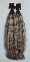70cm.60gr.100 Adet Premium Serisi Mikrokaynak Saç Dalgalı Kahve Platin Röfleli Renk